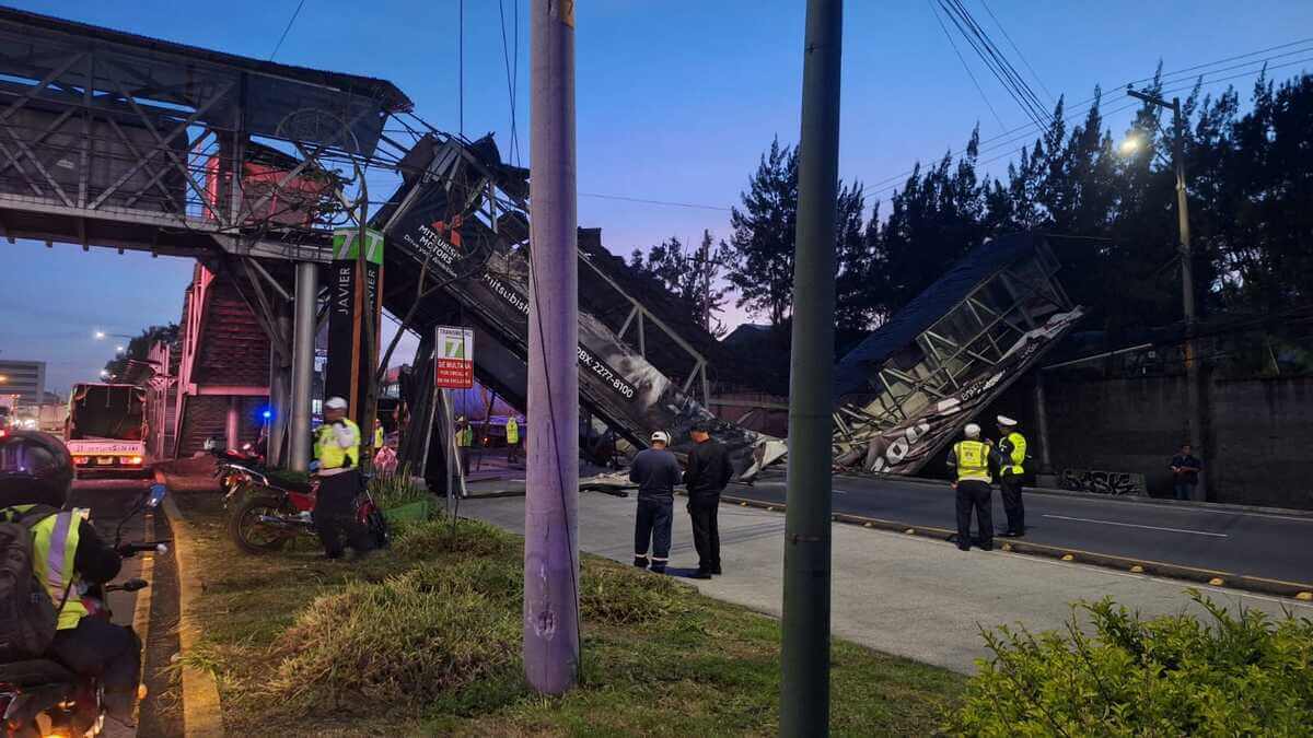 Un tráiler, durante la madrugada de este sábado 18 de octubre, causó el colapso de una pasarela ubicada en la 37 calle y calzada Aguilar Batres tras chocar contra esta estructura.
